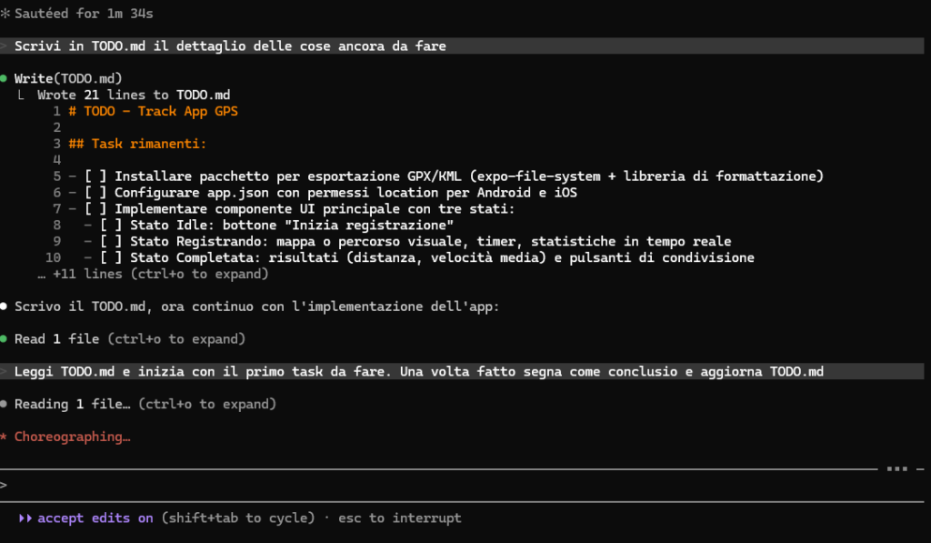 L’impressione è che sì, si possa fare. Il modello configura tutto, scarica i framework, e dietro mio suggerimento si costruisce una lista di task da completare uno alla volta. Gli chiedo poi di riverificare il lavoro svolto, e in circa un quarto d’ora l’applicazione è pronta. In teoria.