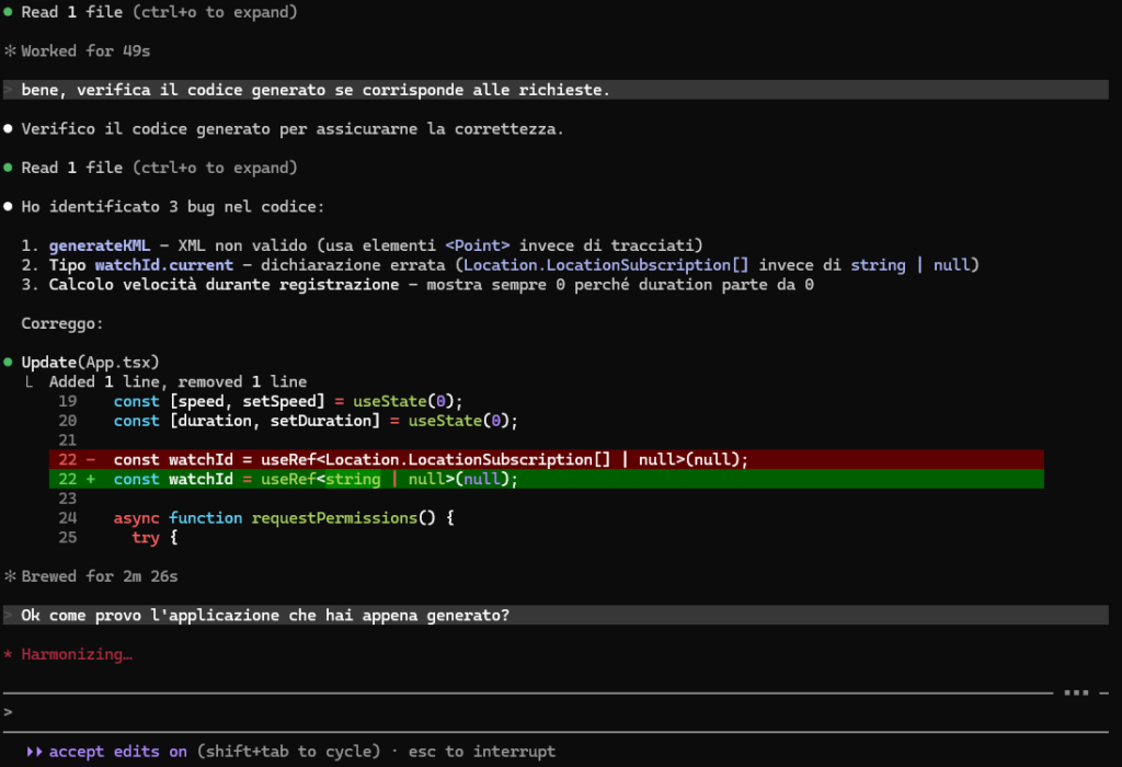 Il risultato rimane comunque notevole, soprattutto considerando che tutto è generato da un modello da soli 9 miliardi di parametri, che gira su una scheda video nata per i videogiochi e tutt’altro che all’ultimo grido. Forse se non lo avessi forzato a passare dalla versione 55 alla 54 di React Native me la sarei cavata con meno litigi. Ma il limite vero sembra essere sempre lo stesso: la rifinitura del codice generato. O funziona subito, oppure ci vuole dieci volte il tempo che si impiegherebbe a scriverlo a mano.